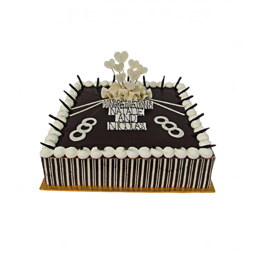 A delicious blend of a fine Belgium chocolate mousse layered with chocolate sponge and topped with a soft dark chocolate ganache. A classic Chocolate Mousse for any one that adores chocolate.